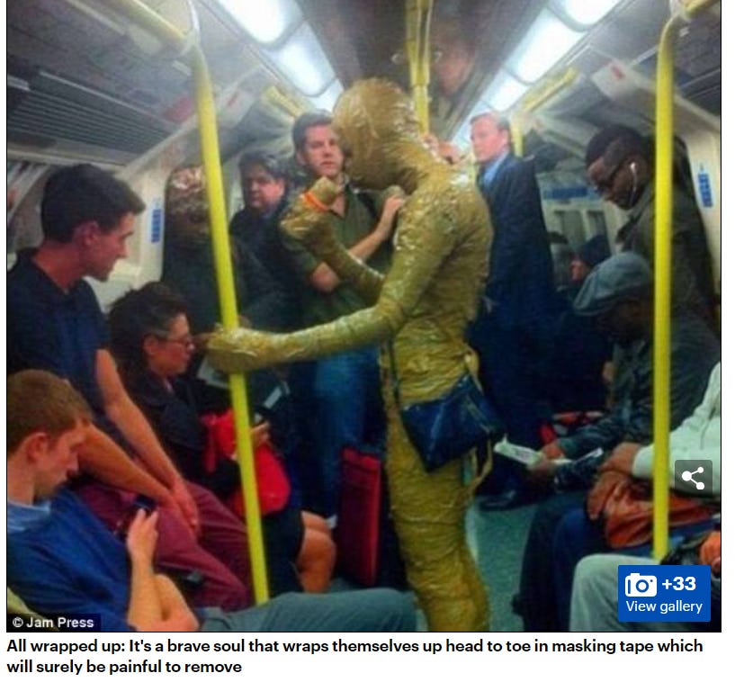 What better way to cover your bumps than with duct tape? This guy, in particular, is ready for the new norm at Pride events: