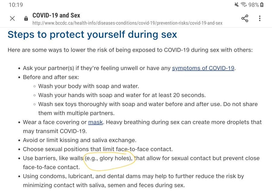 During the COVID pandemic, Canadian public health officials suggested people protect themselves by using glory holes: