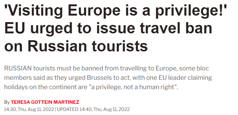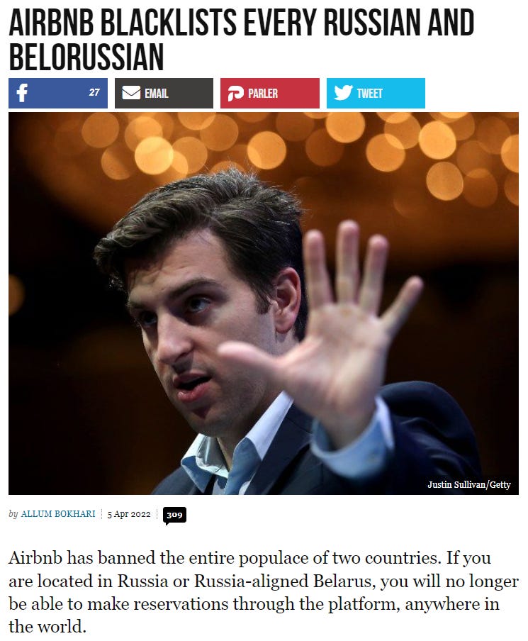 Meaning if you have a business or offer a service, you should ban Russians from having the privilege of being your customers and giving you their money…