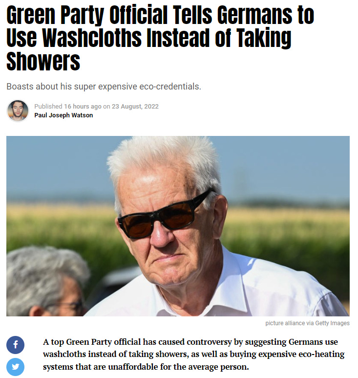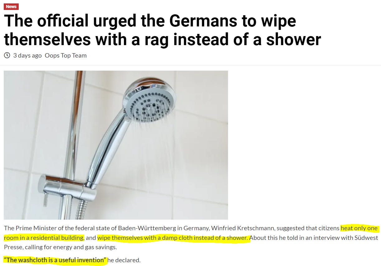 Given that Vlad seems to like his water coldddddd, why not just stop taking showers at all? The Prime Minister of the federal state of Baden-Württemberg in Germany, Winfried Kretschmann, has even suggested citizens wipe themselves with a damp cloth instead of showering as a way to punish Putin: