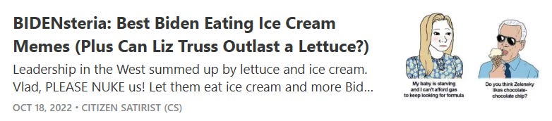 COVIDsteria: An Oral History of America’s Great Reset (Table of Contents) is a fictional satire along the lines of a Studs Terkel oral history or Max Brooks' World War Z published as a serialized book on Substack while Tales From the Great Reset is our occasional satirical short-story series and BREAD&CIRCUSES posts are weekly humor roundups. In addition, check out our Community + Links to Alternative COVID & Great Reset Resources...