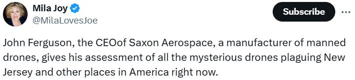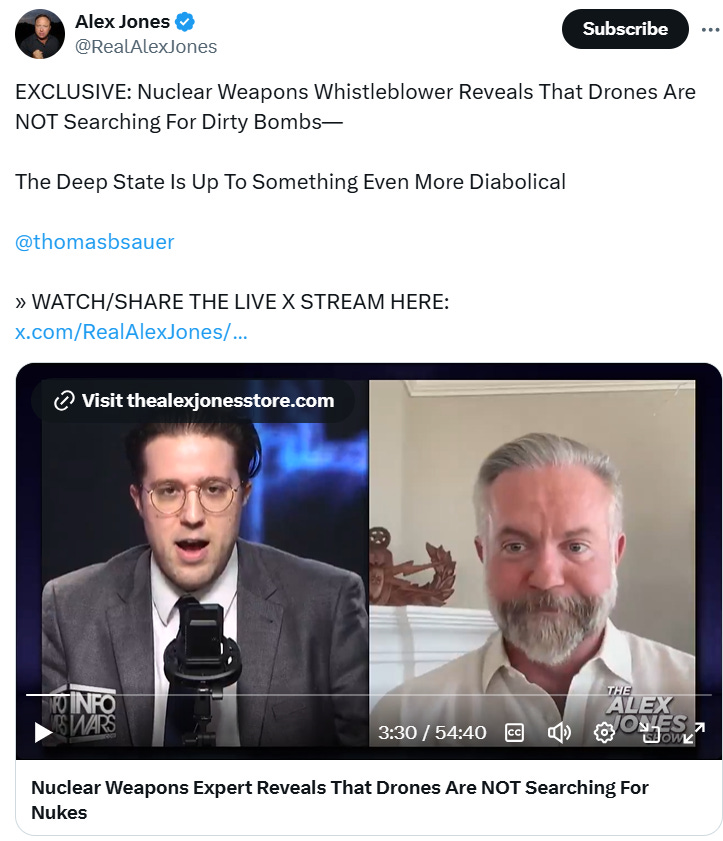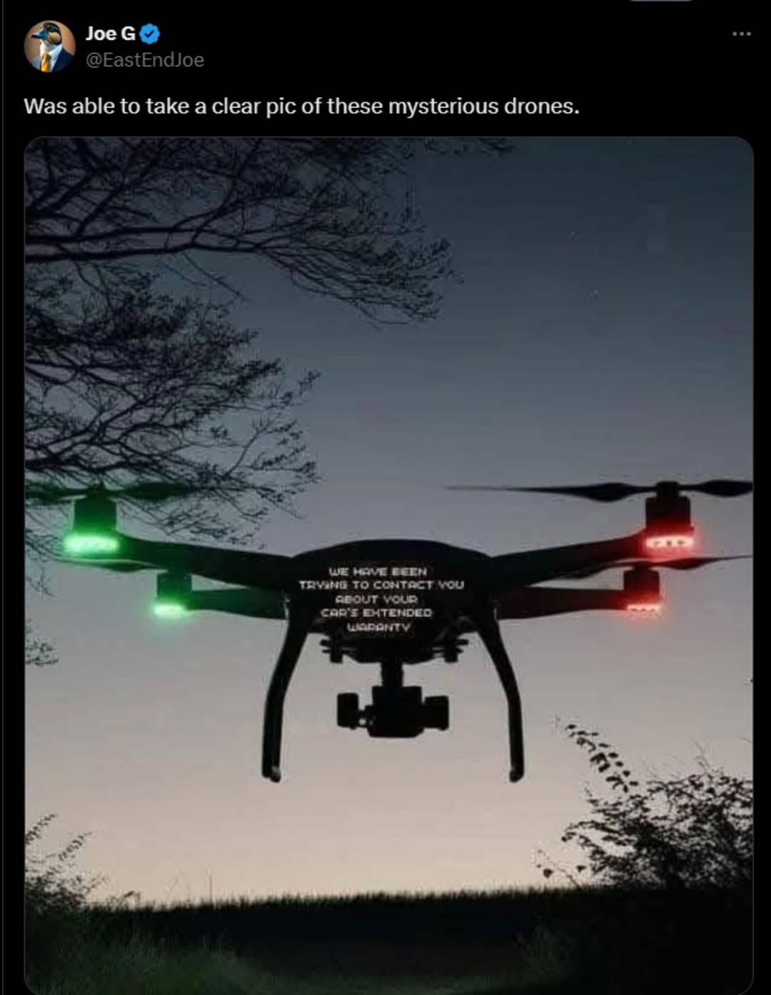 “Mysterious” drones have been flying over the East Coast with this guy having the best explanation e.g. the gubment is looking for or rather trying to detect something - like radiation from missing nuclear material…:
