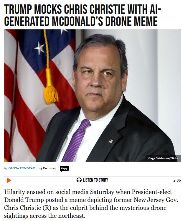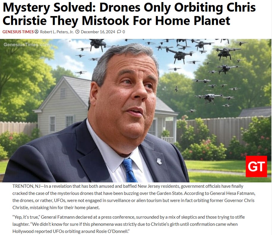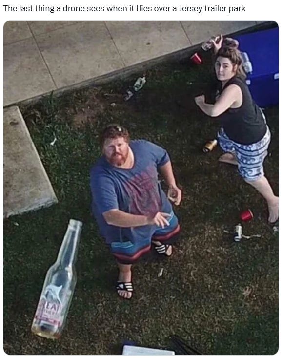 More distractions or fake narratives for a new forever war, the last thing a drone sees over a Jersey trailer park, they came for Chris Christie and more drones over New Jersey memes!