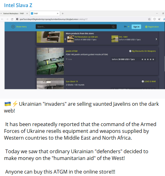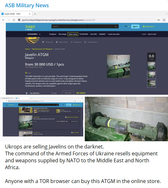 ATTENTION TERRORISTS: Javelins on sale! (Original link: https://t.me/asbmil/1889):