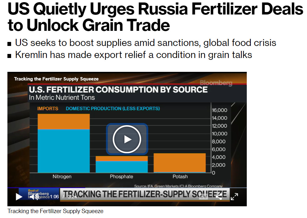 Wait a second, doesn’t THIS violate sanctions??? [US Quietly Urges Russia Fertilizer Deals to Unlock Grain Trade]