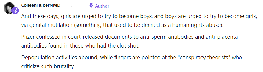 I did post the link to the NAZI article on a few other Substacks to bring it to the attention of other writers with Colleen Huber NMD commenting:
