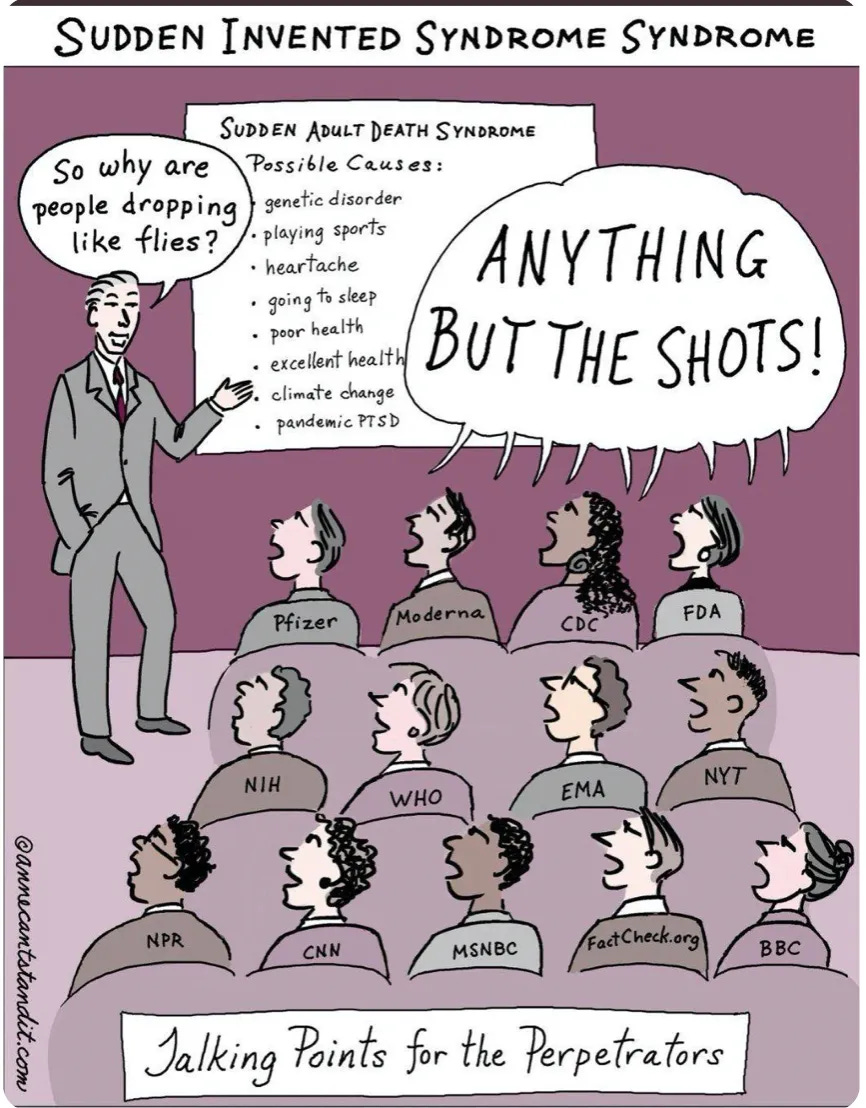 Check out Top 13 Sudden Adult Death Syndrome Causes - I will need to do a follow-up post with all the new excuses causes they are coming up with! And now for some more vaccine side effect memes…