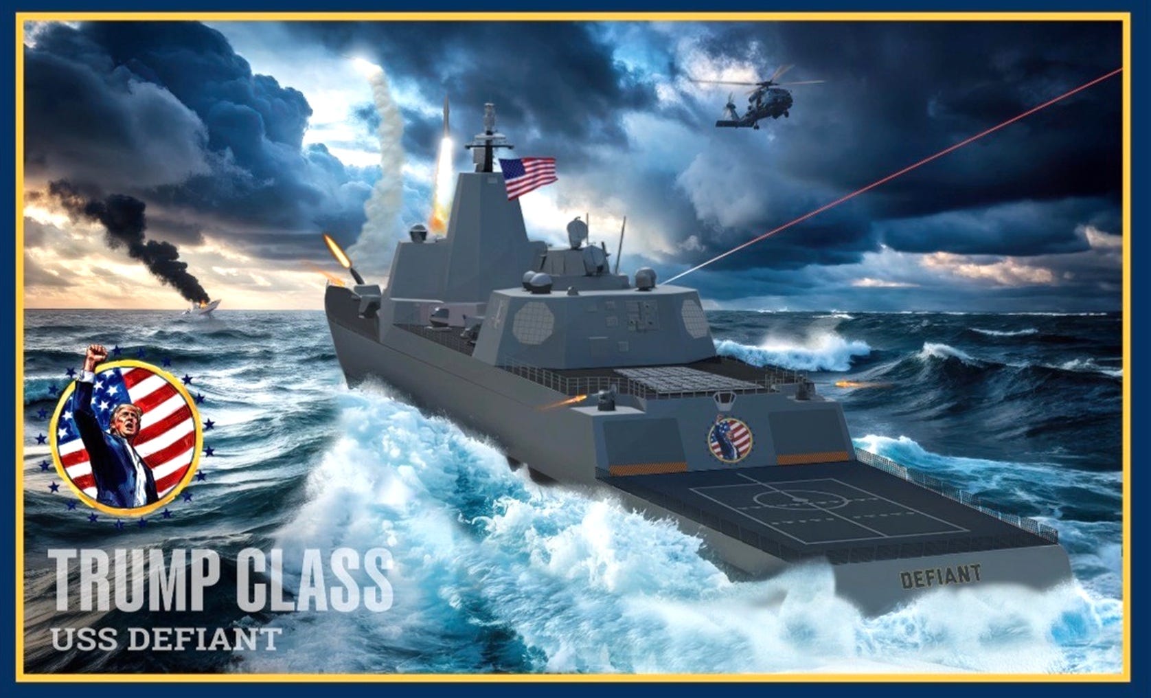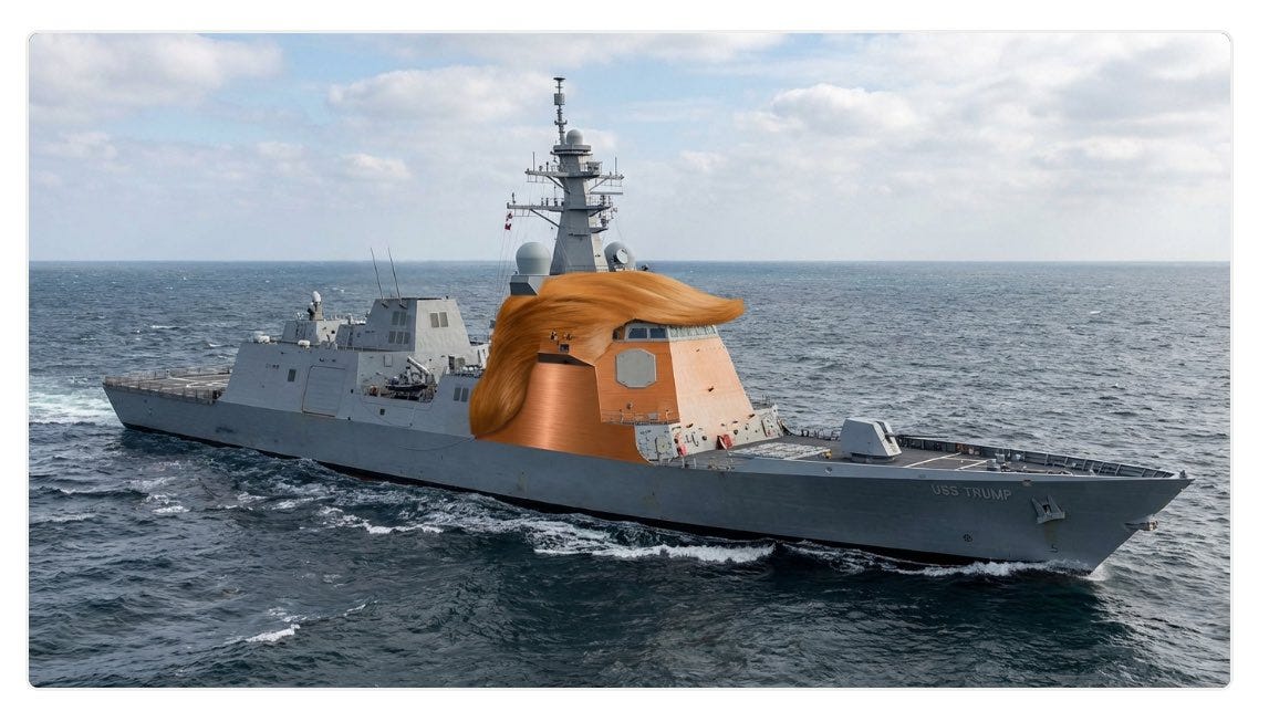Trump has announced a new Trump class battleship, that, like his White House ballroom project, should piss off all the right people given who they will be named after his truly: