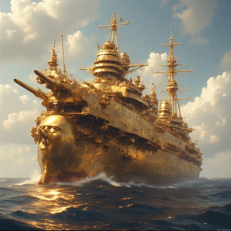 Bound to anger all the right people even more than the ballroom project by having his name on it, exclusive photos (they are gonna be huuuuge & of course golden) and more Trump class battleship memes!