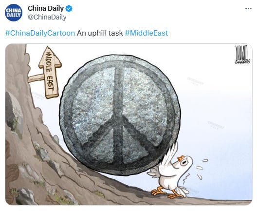 China Daily has just tweeted this cartoon summarizing the current situation in the Middle East: