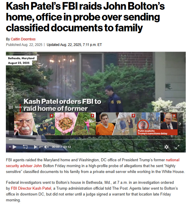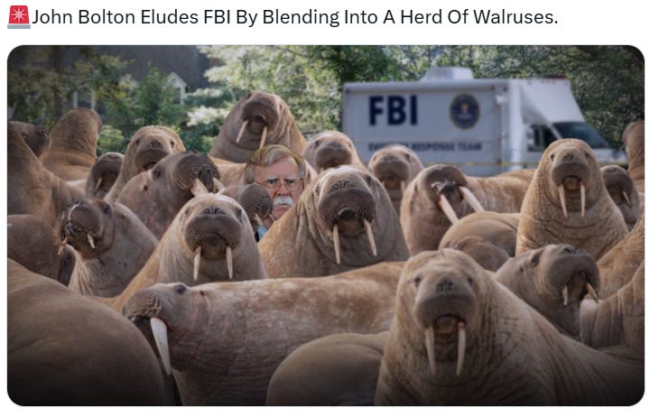 War pig John Bolton has been having a bad day as the FBI raids his house to apparently look for classified documents: