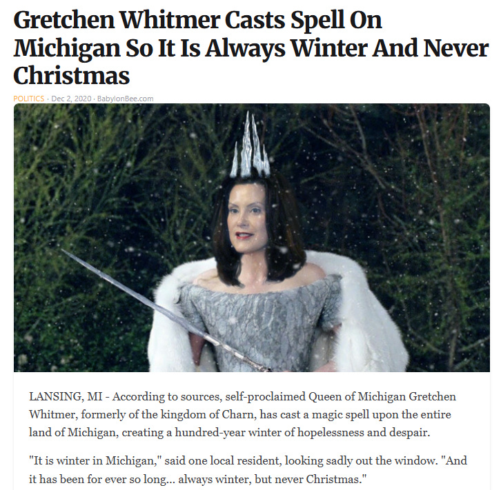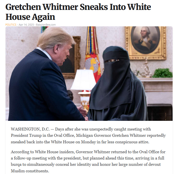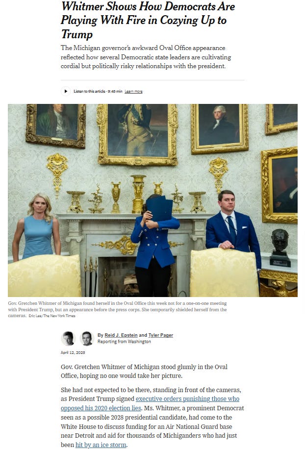 Michigan Governor wicked stepmother dictator recently visited the Oval Office…:
