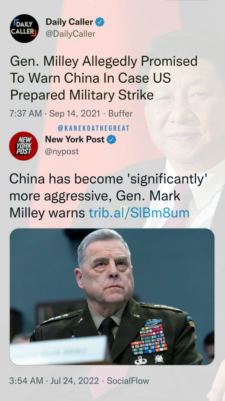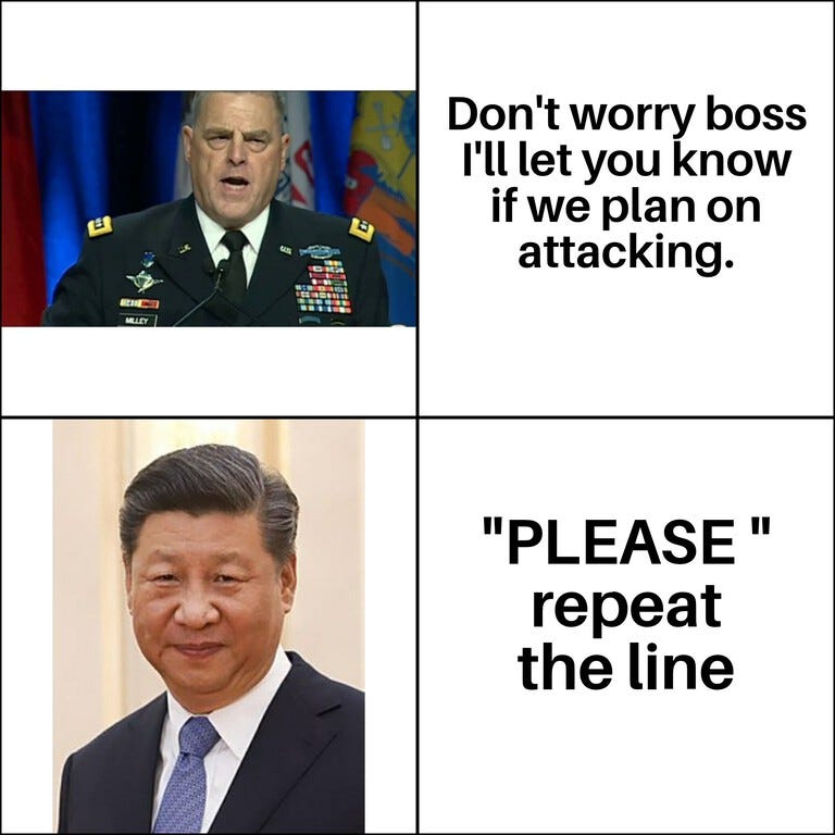 However and despite all the bluster, we probably don’t have to worry much about fighting China and finding out their current military capabilities any time soon - General Milley will make sure of that: