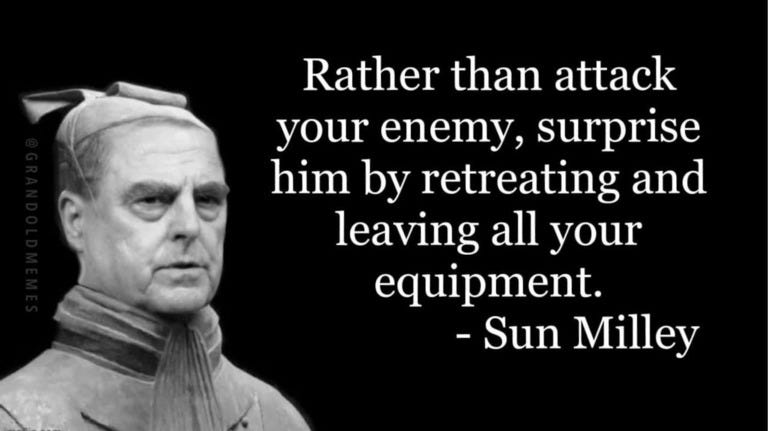 Generals then and now, woke military "priorities" (like stealing Syrian oil & grain), cannon fodder recruitment falls and more General Milley memes plus a REALITY CHECK about our military history!