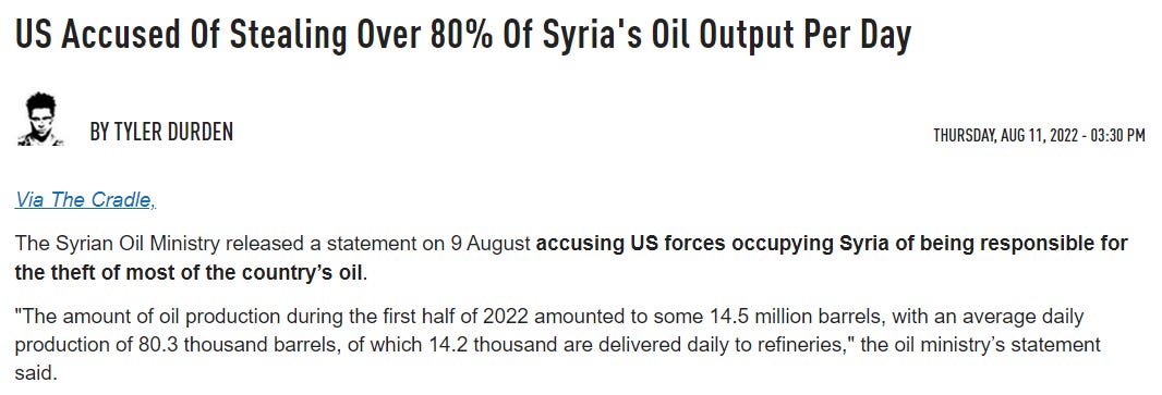 [US Accused Of Stealing Over 80% Of Syria's Oil Output Per Day AND Washington steals over 80 percent of Syria’s oil output per day]