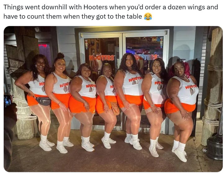 Inflation killed Hooters (again, I am not a factcheckerā¦)!!!: