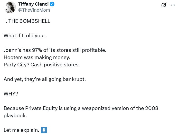According to ant-private equity activist Tiffany Cianci, Hooters locations owned by their operators or the original investors are doing just fine. Itās the corporate entity/locations who got gutted by private equity who are in trouble: