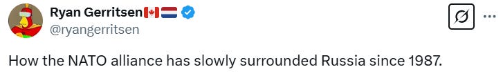 Your map shows that NATO has seven military bases in Russia. No wonder they're concerned.
